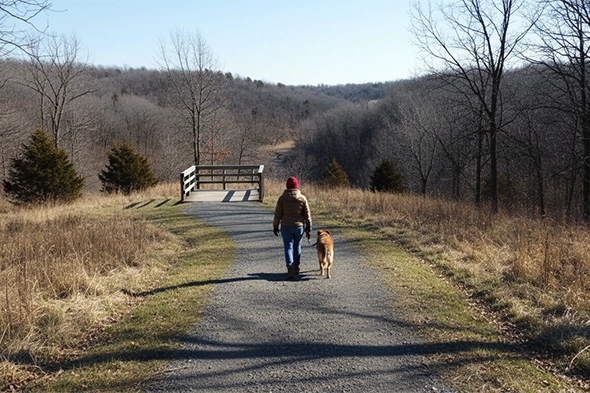 Rolling, wooded hills and scenic overlooks give this park a true “getaway” feel—perfect for a longer leashed hike and a change of scenery just outside Louisville.